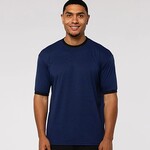 A4 ADT SOFTEK RINGR T 65% Recycled Poly, 35% Natural Cotton. 4.1 ounces. Moisture wicking to keep athletes cool. Stain and odor release for easy care. Earth friendly. Contrast ribbed collar and cuffs. Easy tear away label for rebranding.