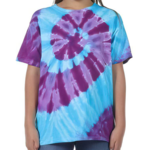 Dyenomite Youth 5.3 Ounce Typhoon T-Shirt. A storm of style not to be missed. These tropical-inspired tie dyes will certainly cause a stir with their energetic colors. Preshrunk, 100% cotton, 5.3 ounce fabric. Double-needle stitched neckline and bottom hem.